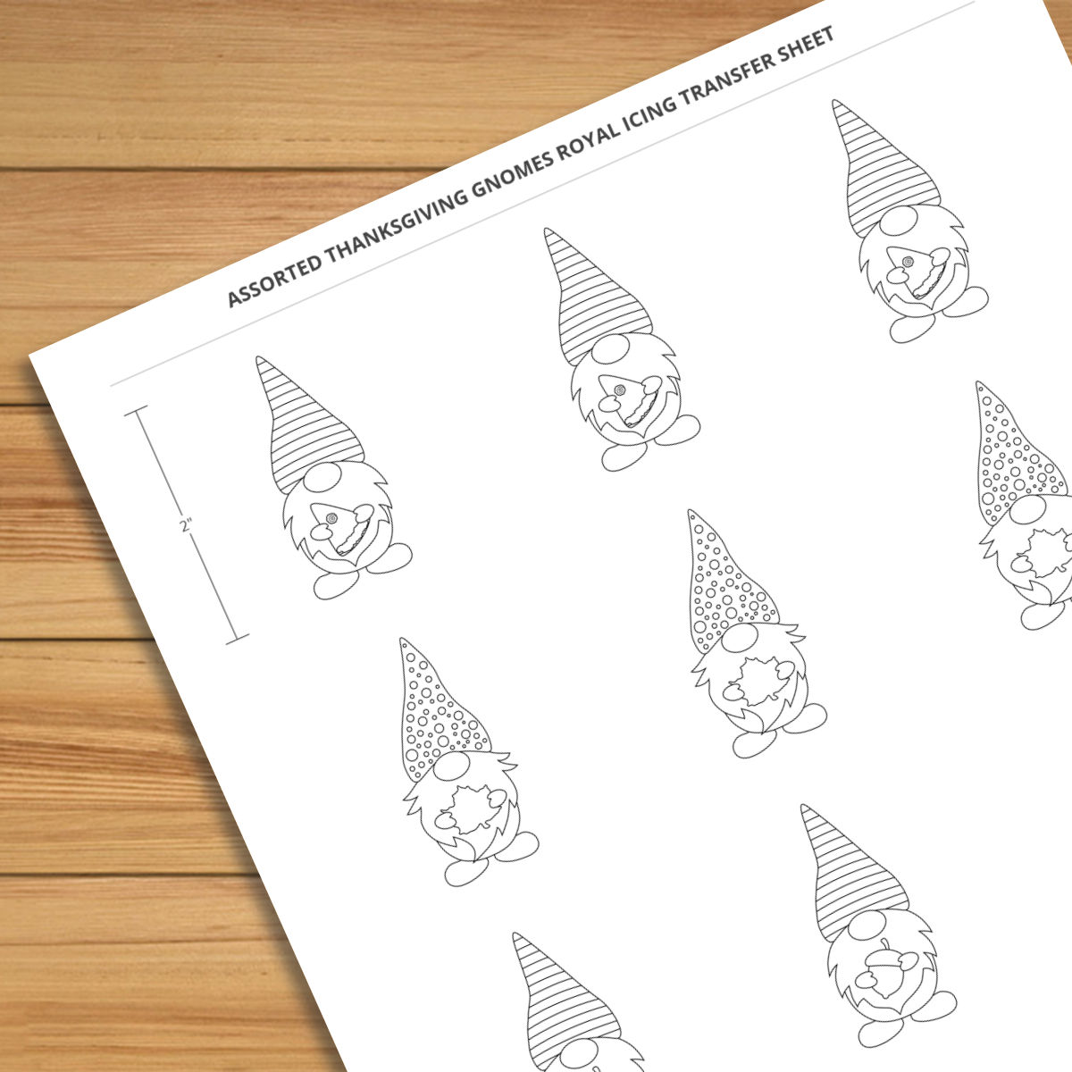 Assorted Thanksgiving Gnomes Royal Icing Transfer Design (3 sizes)