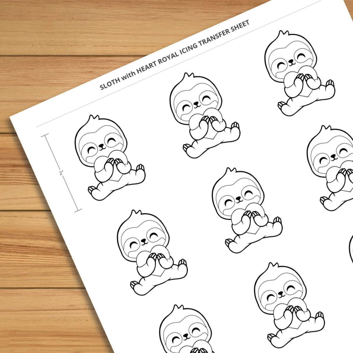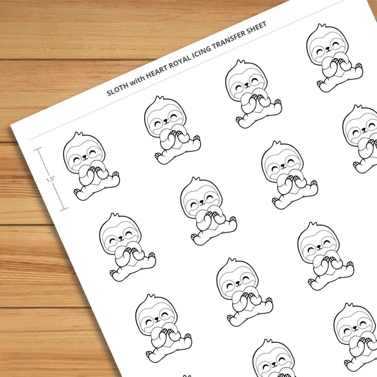 Sloth with Heart Royal Icing Transfer Design (3 sizes)